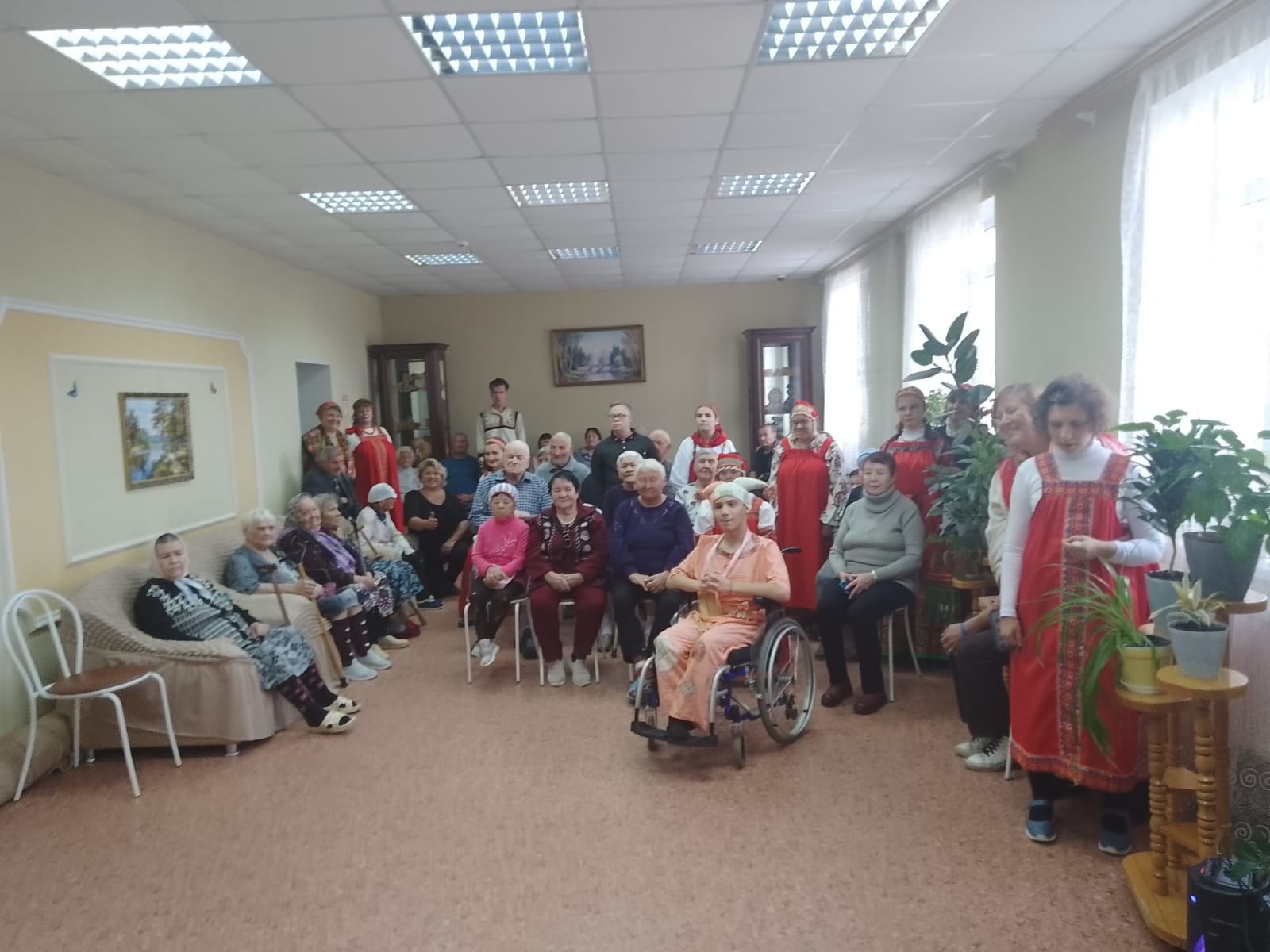 2 октября наш дом интернат посетили представители "Фонда милосердия" работающие с инклюзивной группой детей. Представили вниманию зрителей праздничную концертную программа, посвященную "Дню пожилого человека" - "Согреем ладони, разгладим морщины". В их исполнении прозвучали стихи, песни, потешки и гимнастический этюд. В заключении бабушки и дедушки получили в подарок открытки сделанные детьми и сладкие угощения.
